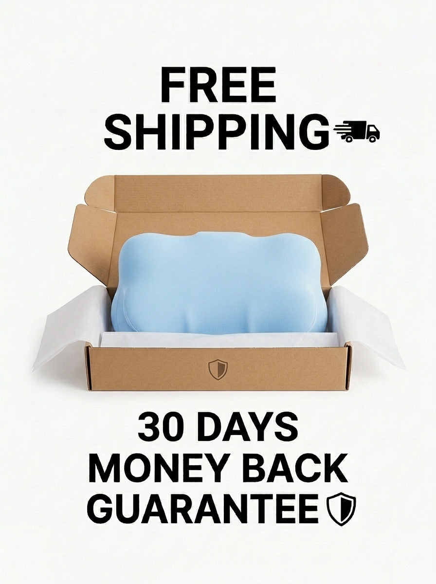 A: Sky Pillow uses contoured memory foam shaped to cradle your head and shoulders, so you stay comfortable all night instead of fighting a flat, unsupportive pillow. Many customers tell us they wake up feeling noticeably more rested and ready for the day.
